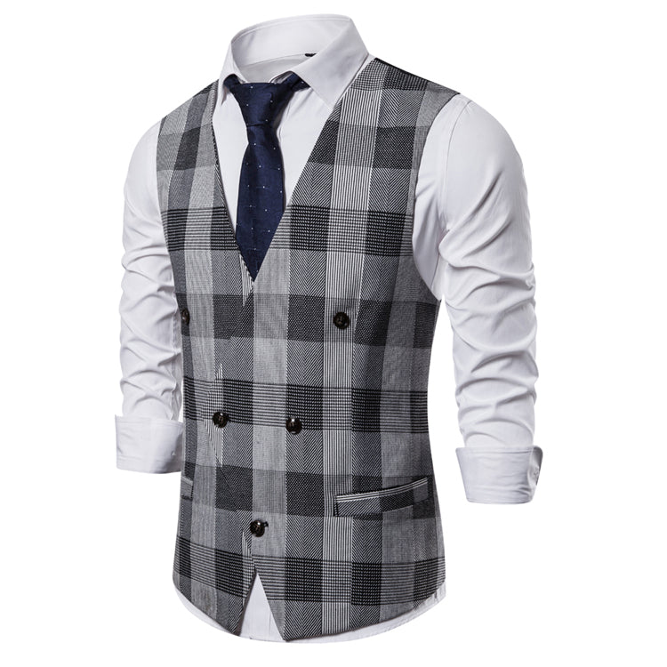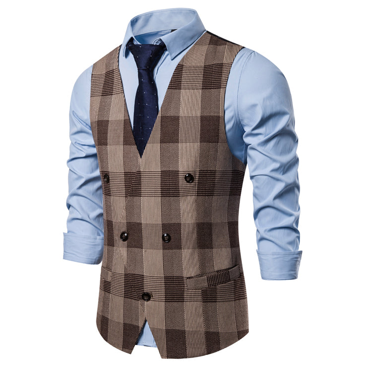 Elegant Double-Breasted Plaid Vest