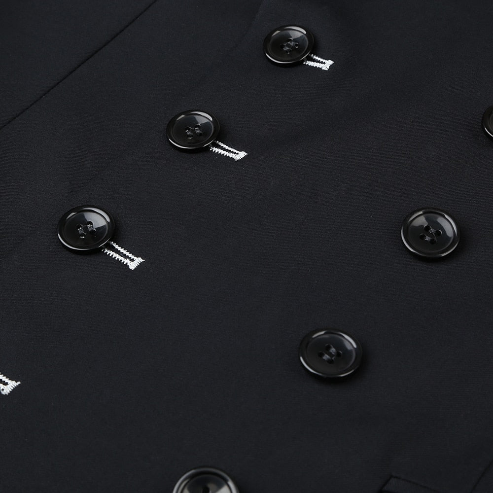 A double-breasted suit is a statement on its own, so you can keep your shirt and tie combo relatively conservative. Our formal 2-piece suit is appropriate in any situation, for the office, dinner or to the bar.
